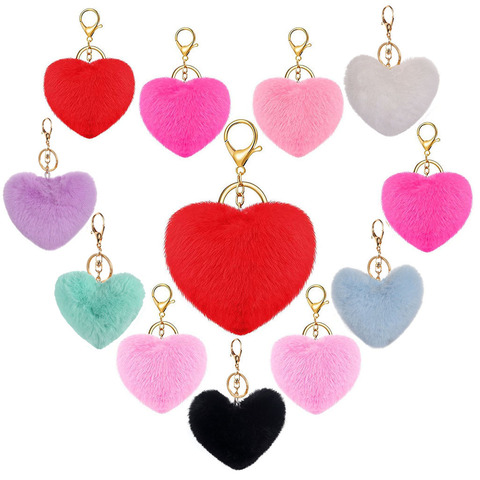 Heart Fur Pompom Ball Keychains Keychain With Fluffy Ball for Girls Women Bag Pompoms Keyring Faux Rabbit Fur Puff Balls