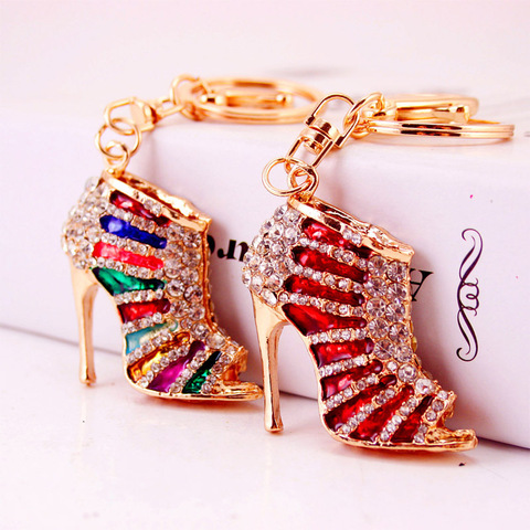 Wholesale Fashion Luxury Rhinestone Metal Accessories Exquisite Cartoon Cute High Heels Women Keychain