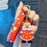Custom New Christmas Accessories Cartoon Cute Gift Santa Claus Christmas Tree Pendant Silicon Keychain for Christmas Gift